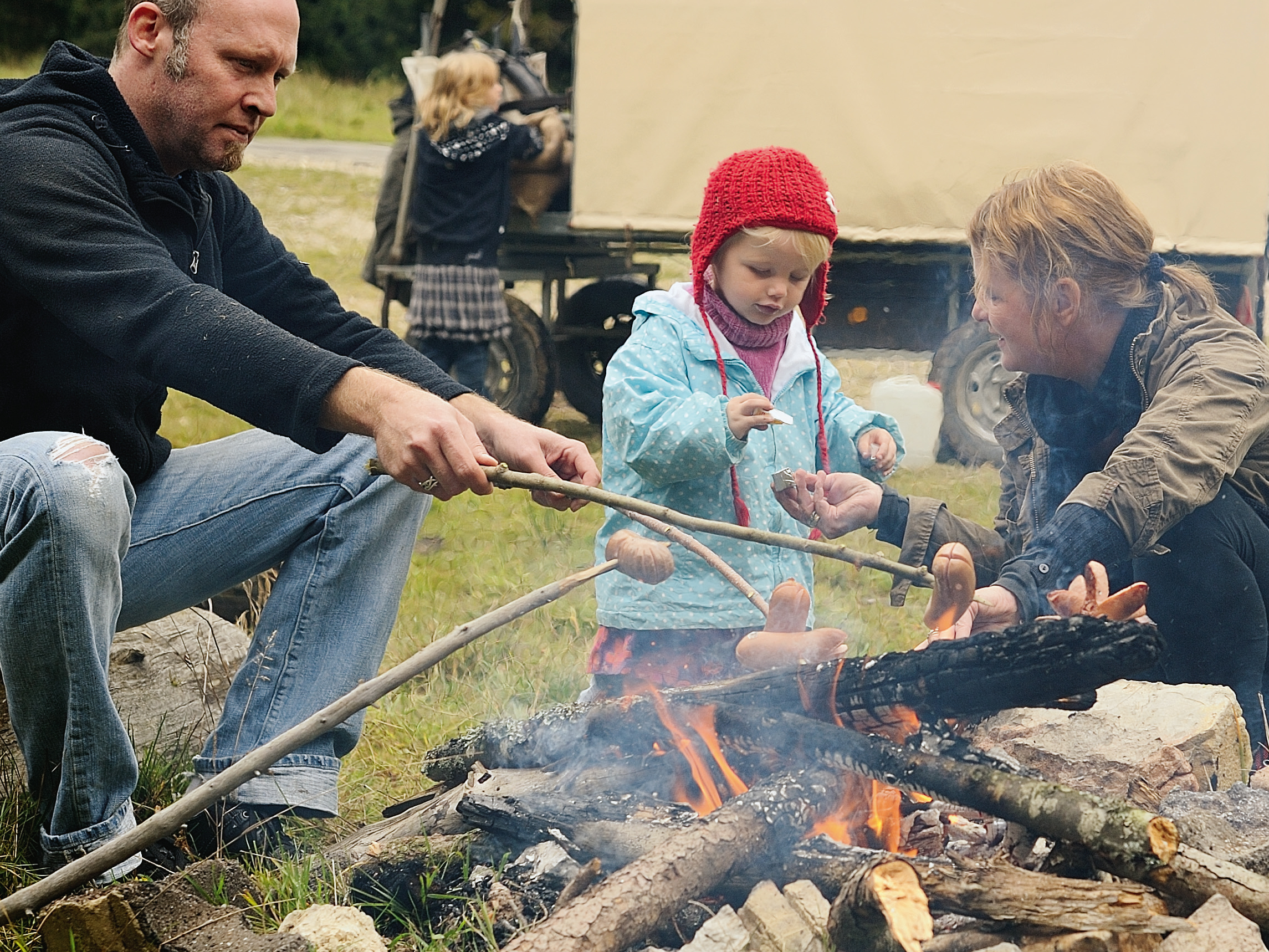 In unsere Körper dringt jetzt nicht mehr die Kälte; es ist die Ruhe, diese absolute Stille, die sich breit macht, ausdehnt, zufrieden macht. Nichts tun, keine Termine, keine Verpflichtungen. Einfach Zeit. Wir sitzen auf dem Bock oder gehen hinter dem Wagen und neben dem Pferd her. Der raue, schleppende Groove von Vulcains Hufen, das kratzige Klatschen auf der Strasse, klack, klack, geben den Rhythmus, den Sound. Es ist die Langsamkeit, die Unaufgeregtheit, die uns erfasst, uns still macht. Wir diskutieren oder reden nichts. Wir sind. Entschleunigt. Selbst Malin ist still und zufrieden. Trotz der Tatsache, dass sie die gesamte Fahrzeit auf dem Wagen verbringen muss. Denn zu Fuss hätte sie nicht mithalten können, das Pferd läuft relativ schnell. Nun sitzt sie mal vorne bei Mike auf dem Bock, die Zügel in den Händen und spielt Kutscherin, oder sie lässt sich hinten im Wagen auf einem der schmalen Holzbänke von Papa Geschichten erzählen. Die Kinder freuen sich über die Zeit, die wir Eltern für sie haben.