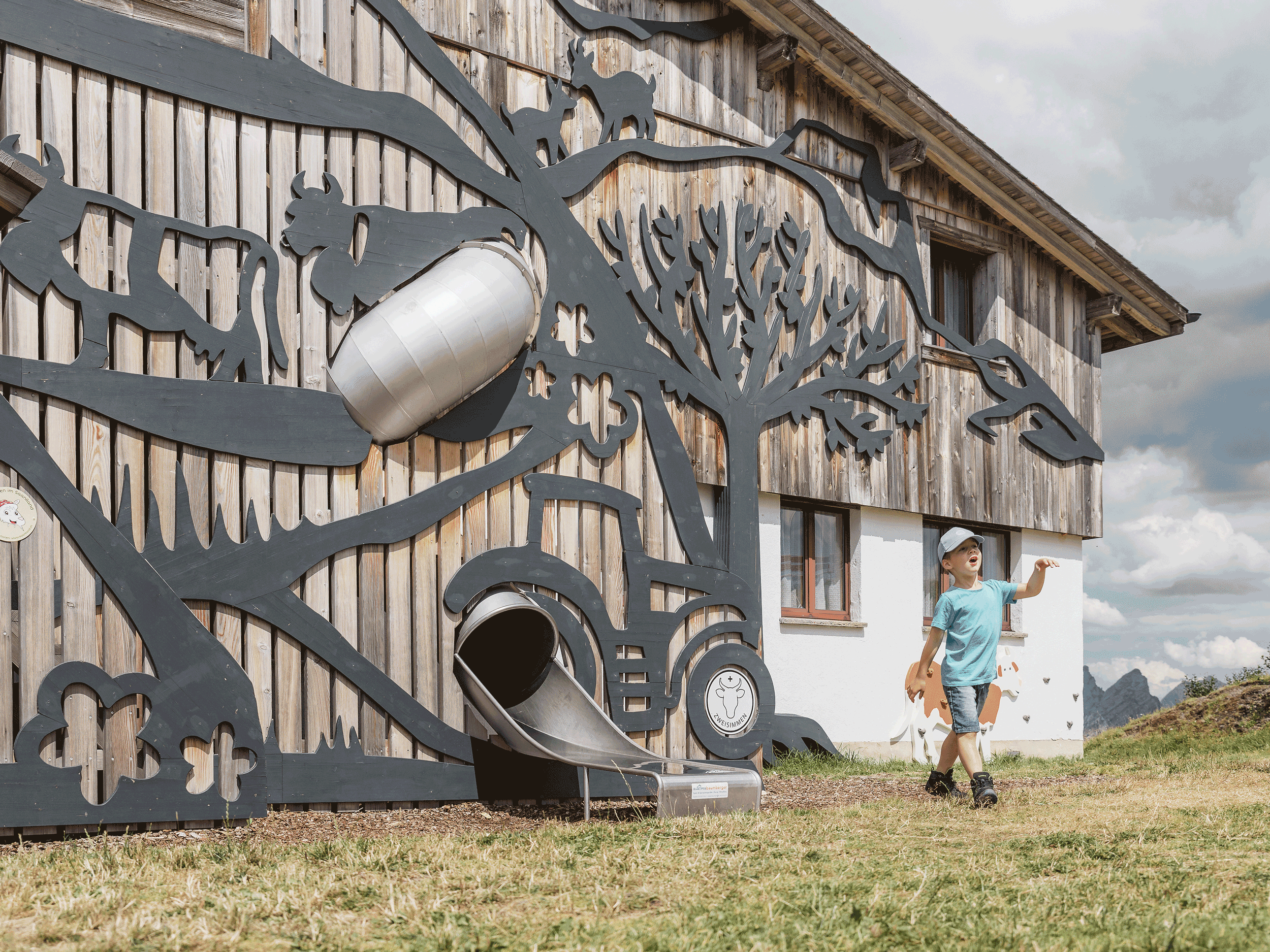 Am nächsten Tag begleitet uns Mike von Grünigen vom Tourismusbüro Gstaad auf den Familienberg Wispile. Für Nikola ist Mike der Grösste. Nicht, weil Mike zweifacher Weltmeister im Riesenslalom ist, sondern weil er Nikola mit Geduld das Rutschen auf der Tunnelrutschbahn beibringt. Der Junge traute zuvor keiner dunklen Röhre. Jetzt mag er mit Hochklettern und Runtersausen nicht mehr aufhören. Sein Übermut wird erst im Streichelzoo ausgebremst. Denn dass selbst süsse Geisslein nicht permanent gekrault und gefüttert werden mögen, muss ein Stadtkind erst lernen. Ziegen meckern nämlich nicht als Vorwarnung, sondern setzen mit ihren Hörnern gleich Fakten. Natur halt.