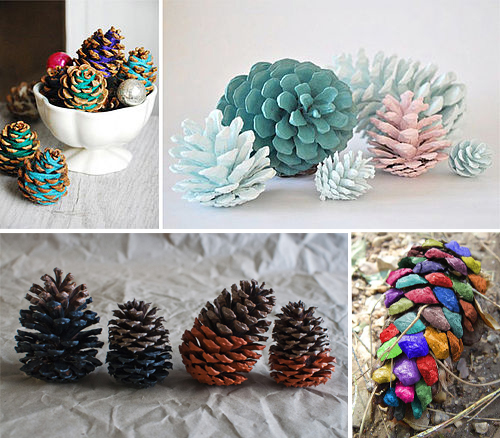 Die bunten Tannenzapfen tauchen momentan auf allen namhaften Do-it-Yourself-Blogs in irgendwelcher Form auf. Ein Trend? Wir jedenfalls werden diese Woche auf dem Waldspaziergang unterm Schnee nach Kiefern- und Tannenzapfen suchen. Falls das zeitlich nicht klappt, kaufen wir uns einfach im Bastelladen (zum Beispiel bei Depot) einen Sack voll Zapfen in allen Grössen. Um sie dann zu Hause genussvoll bei einer Tasse Glühwein zu besprayen, beglitzern, mit dem Pinsel anzumalen oder sie kurzerhand in den Farbkübel zu tunken. Besonders schön sehen die gefärbten Zapfen übrigens gesammelt in einer Schale aus, aufgereiht im Fenster oder natürlich am Christbaum. Happy Zapfing!