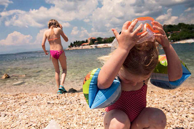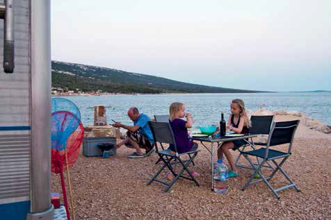 Wir sind schon viel rumgereist, in unserem gemeinsamen und in unseren vorherigen Leben. Diese Camperferien aber sind anders, entschleunigt, speziell. Wir haben alle Zeit der Welt, müssen nie irgendwann wo sein. Wir können einfach sein, abschalten, geniessen. Wir sind in den Nationalpark an den Plitvicer Seen gefahren, in dem mein Mann seine Kindheitsträume von Winnetou und Old Shatterhand und dem Schatz am Silbersee wiederfinden will, nur um dann in Touristenbussen rumgekarrt und zwei Stunden zur Wanderung an silberblauen Seen entlang verdammt zu werden und zu erfahren, dass der Schatz am Silbersee grossmehrheitlich an einem ganz anderen Ort in Kroatien gedreht worden war. Wir schauen durch die Scheiben dem Regen zu, der an einem Tag über das Land fegt und manchen Camper im Schlamm versinken lässt. Und ja: Als wir eben an diesem Strand auf der Insel Pag ankommen, dort, wo sich der Ausdruck Paradies in meinen Kopf einschleicht und sich genüsslich breit macht, kann uns eh nichts mehr was. Wir baden, essen leckerste kroatische Köstlichkeiten wie Pljeskavica gefüllt mit Schafskäse vom Grill oder Dolma, gefülltes Gemüse. Wir erleben Menschen, die lachend und tröstend auf brüllende Kinder reagieren und nicht befremdet gucken. Wir sehen bunte Märkte, lebende Kraken in Verkaufstheken. Und wir machen uns auf den Weg weg vom Paradies, als die Zeit zu drängen beginnt, der Job auf uns wartet, auf eine lange, triste Heimfahrt, zurück in den Regen, aus dem wir gekommen waren. Wir werden wieder losfahren mit dem Camper, solange er es noch macht, mit seinen stolzen 17 Jahren. Vielleicht diesmal gegen Schweden. Und vielleicht sehen wir dort Bären.