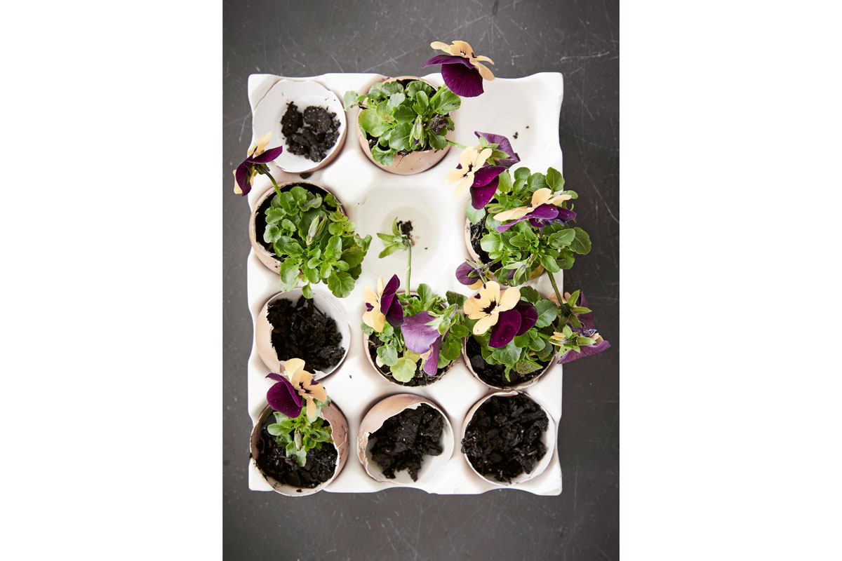 3 Wenn die Blätter etwas grösser geworden sind, die Sellerieknolle in einen Topf mit Erde umpflanzen. Die Spitzen der Blätter sollen dabei sichtbar bleiben.