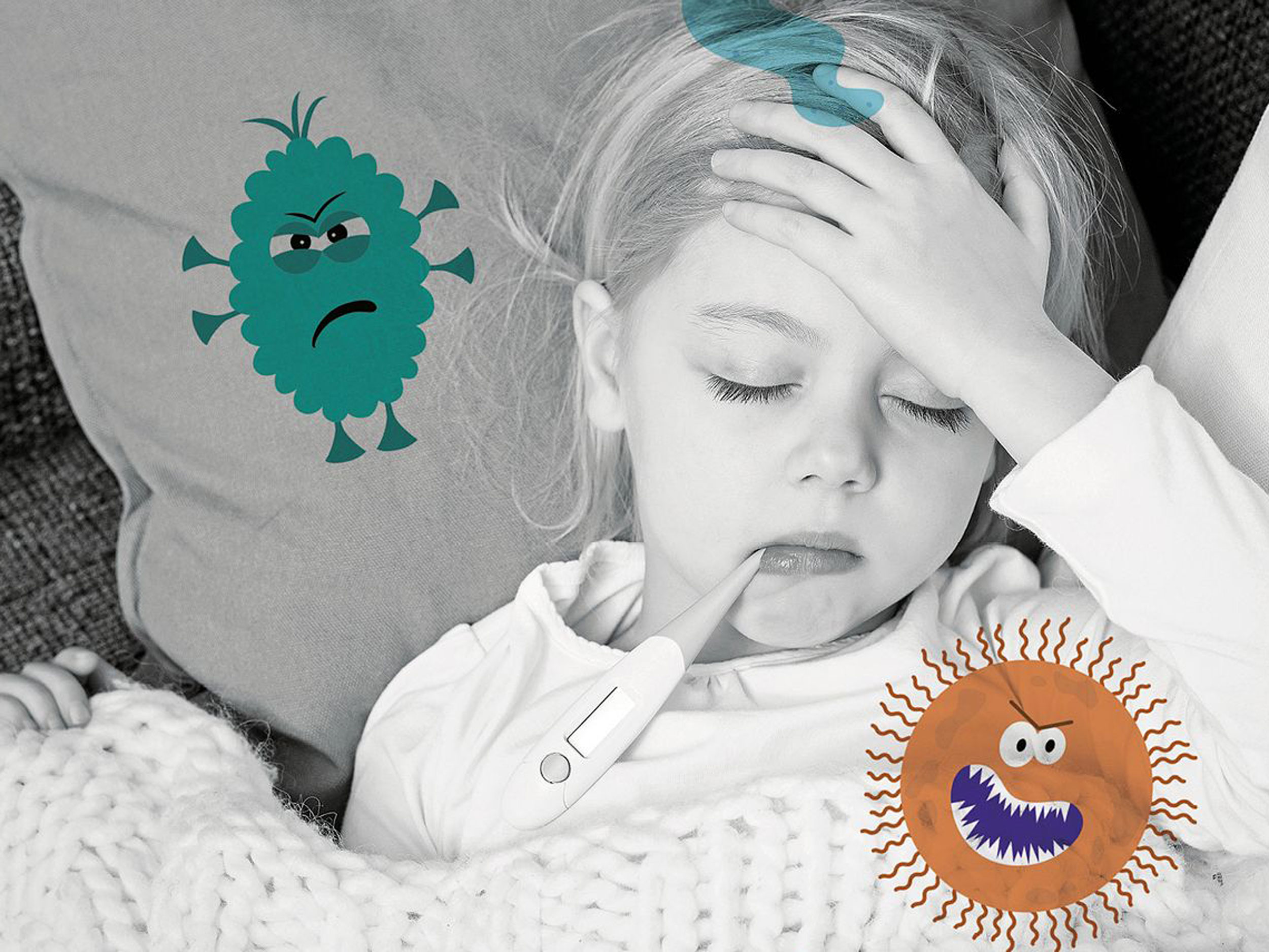 Stecken Kinder beim Spielen die Köpfe zusammen, wird das Immunsystem ziemlich gefordert. Gerade im Winter, wenn ein Kind verschnupft ist, hustet und niest, gelangen Krankheitserreger durch winzige Speicheltröpfchen in die Luft. Wer sich in der Nähe befindet, atmet die infizierte Luft ein oder nimmt sie direkt über die Mundschleimhäute auf. Während grössere Tröpfchen in der Luft schnell absinken, schweben kleinere Tröpfchen länger im Raum und breiten sich über grössere Distanzen aus. Sie bleiben auf Spielzeug und Tischflächen haften und wandern auf diese Weise schnell von Kind zu Kind – oder vom Kind zu den Eltern.