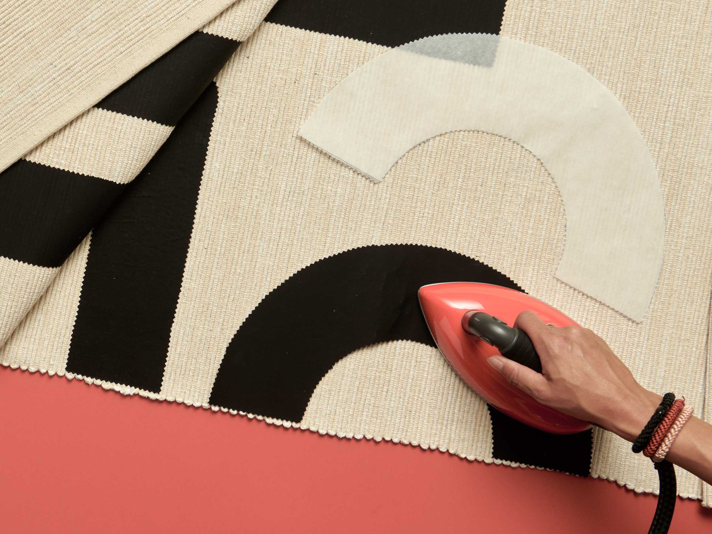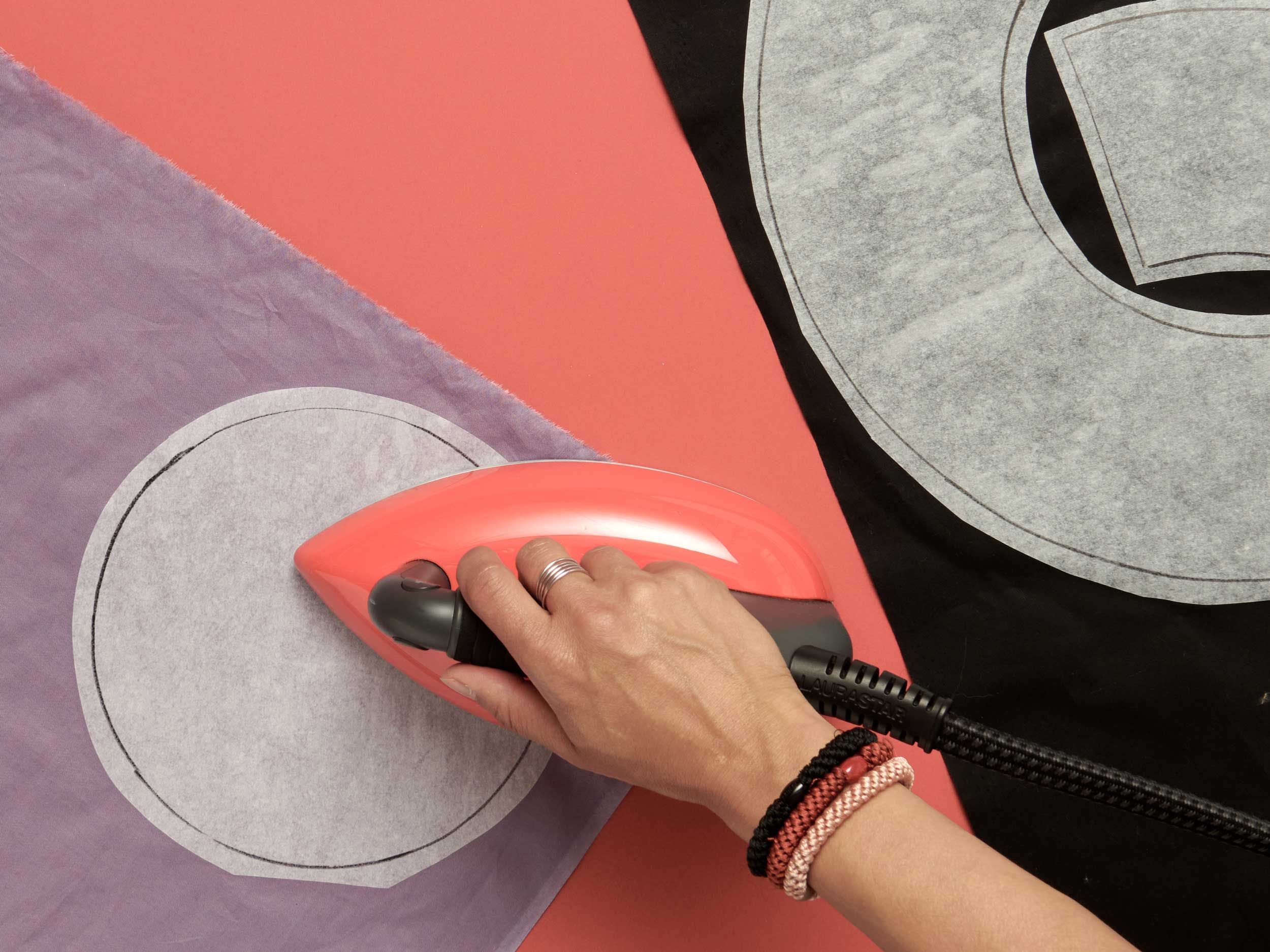 Die Formen nach Anleitung auf die farbigen Baumwollstoffe bügeln.