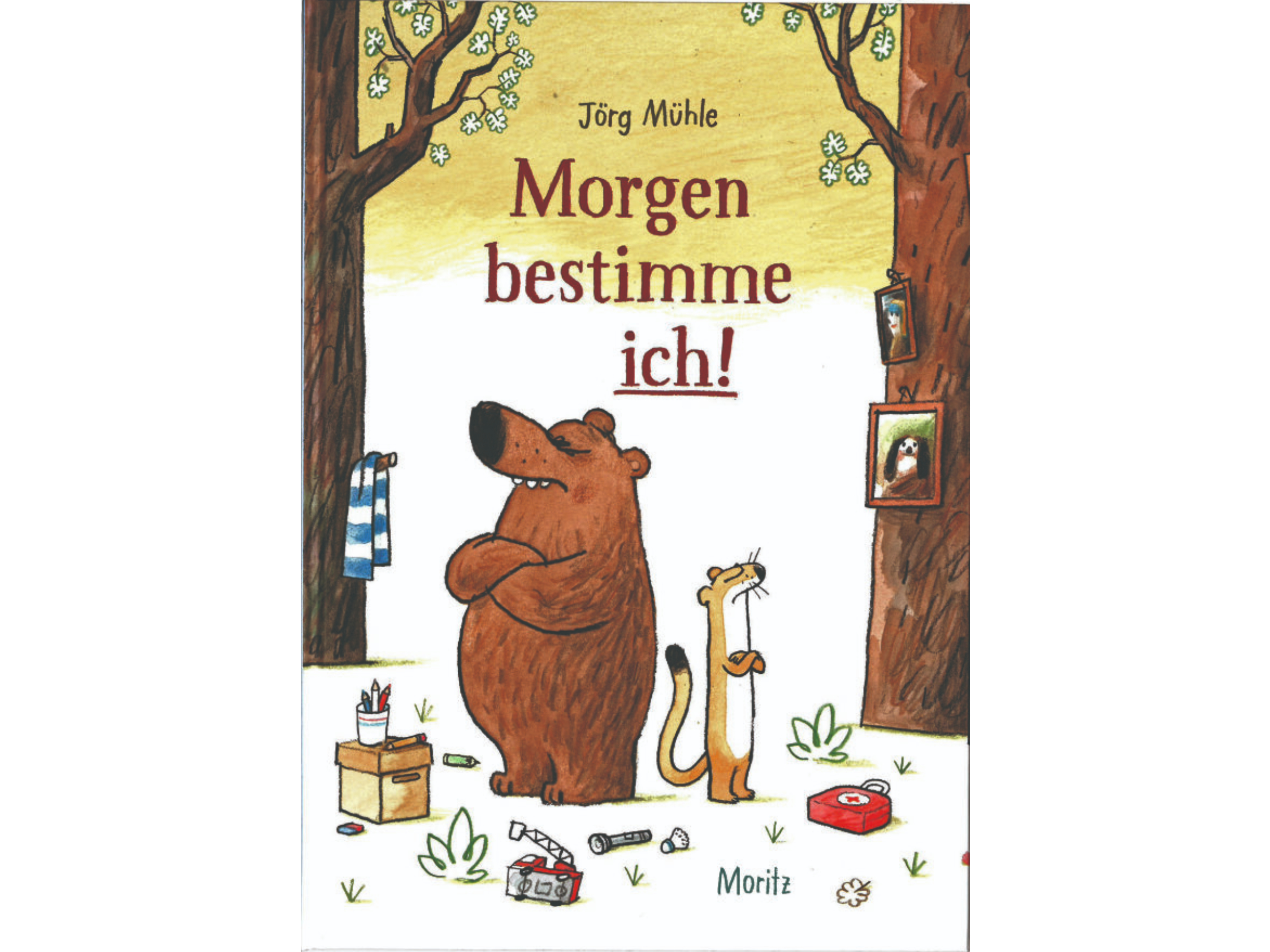 Liebe Eltern, dies hier ist eine Paartherapie verpackt als Bilderbuch. Mit dem Unterschied, dass eine Paartherapie sicher nicht so lustig und herzerwärmend ist wie Jörg Mühles «Morgen bestimme ich!». Worum gehts ? Um den Bären und das Wiesel, von denen jeder partout bestimmen will, wos lang geht. Mütter und Väter werden sich wiedererkennen und Kinder an den niedlichen Zeichnungen und den ulkigen Figuren ihre Freude haben.