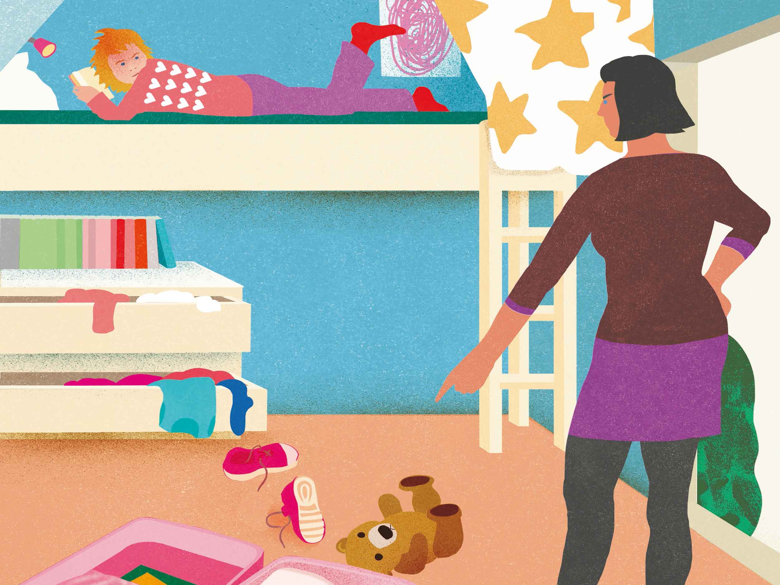So ging das fast drei Jahre lang. Bis. Ja, bis das jüngere Kind, gerade 12 geworden, vor Kurzem eben austickte. Der Anstoss dazu war mein Genörgel über die halb ausgepackten Taschen. Nach jeder Papa-Woche lagen die in ihrem Zimmer rum. Das Chaos, perfekt.