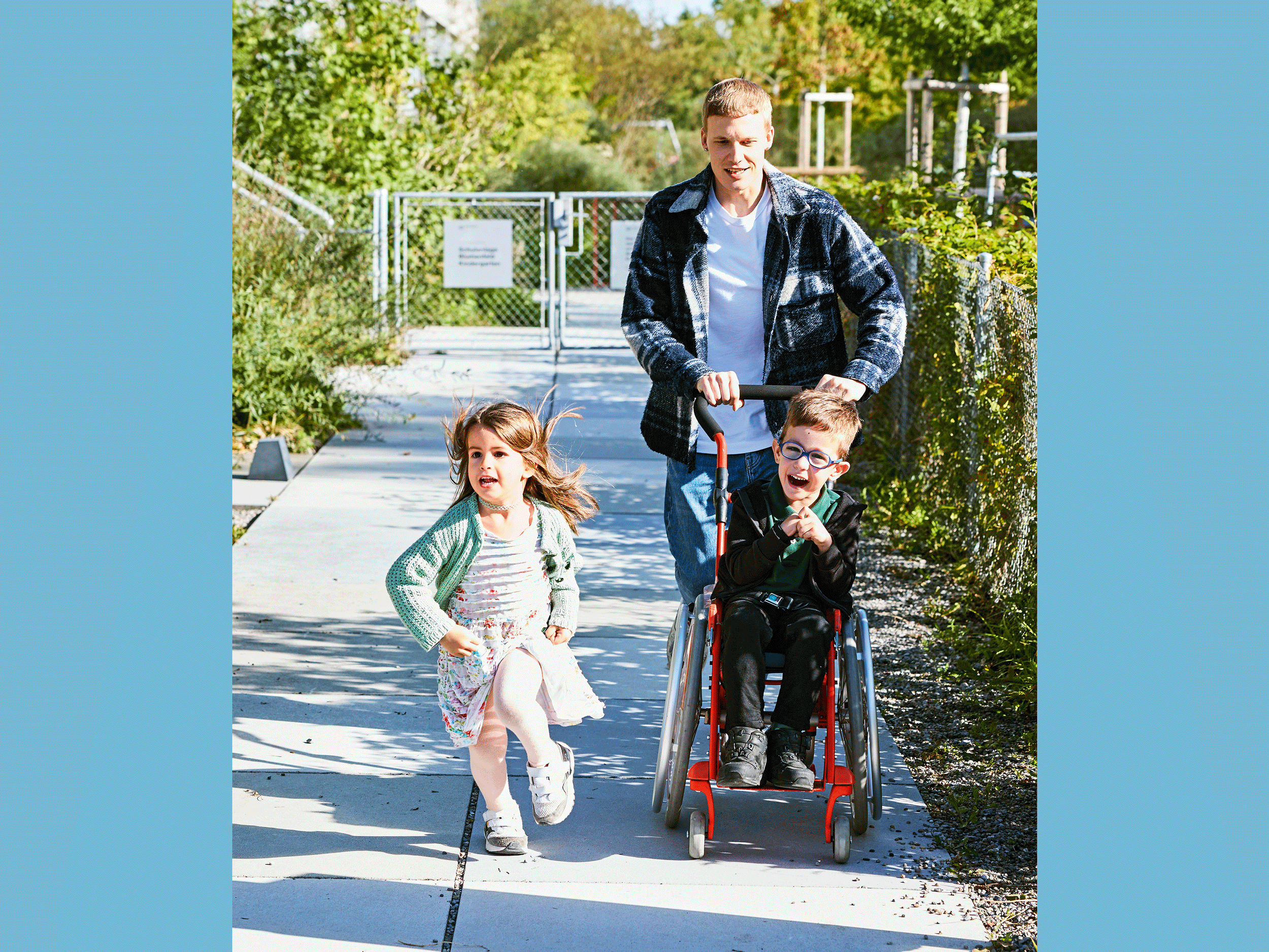 Es ist ein sonniger Herbstmorgen um acht Uhr in Zürich Affoltern. Wie ein wilder Ameisenhaufen wuseln die Kinder vor dem Eingang des Schulhauses Blumenfeld umher. Ein Vater erreicht die Eingangstüre gerade noch ein paar Sekunden vor dem Gong. Er schiebt seinen fünfjährigen Sohn Janis, der im Rollstuhl sitzt, zum Lift. «Janis kann den Lift noch nicht selbst bedienen», sagt der Vater, «daher bringe ich ihn jeweils zum Kindergarten.»