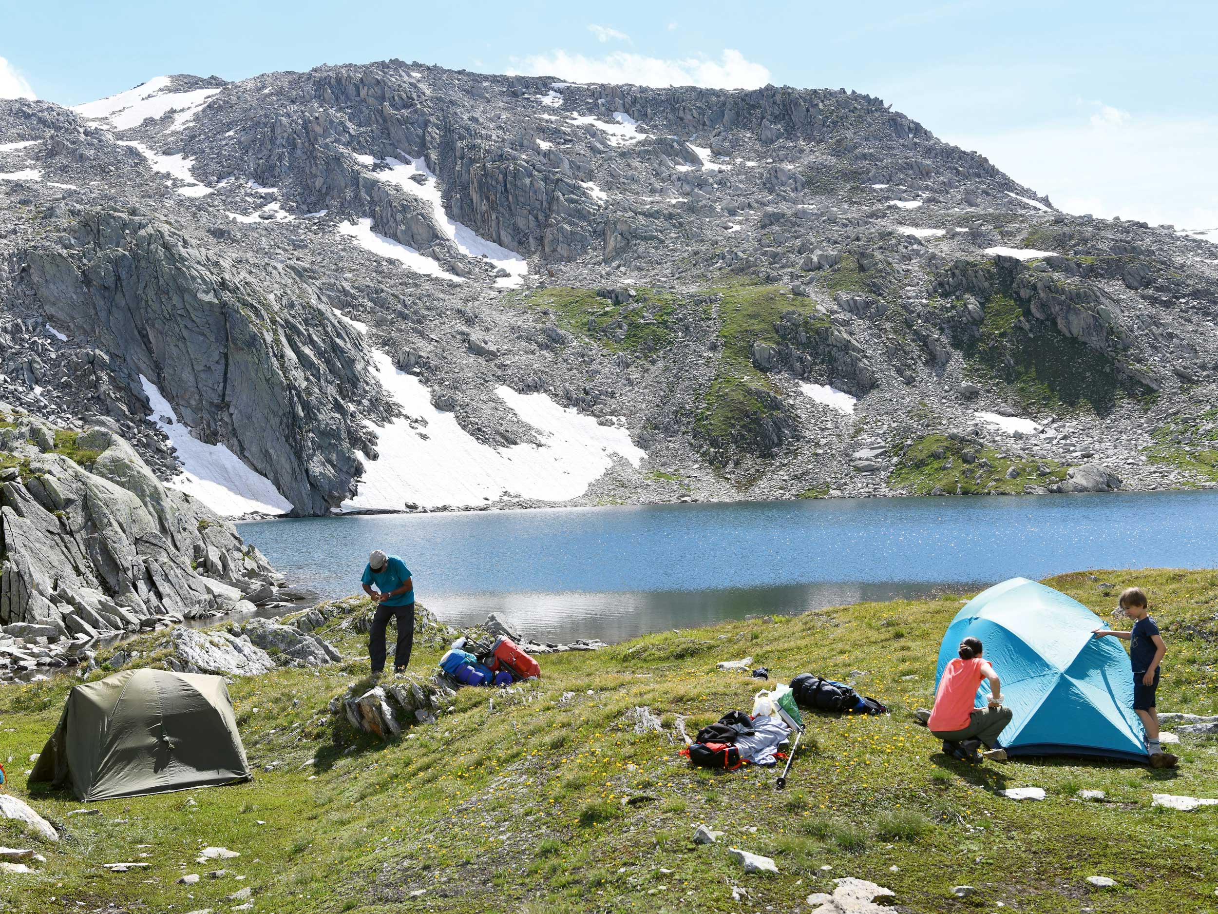 Es vergeht keine Stunde und schon bin ich wieder hellwach. Der Reissverschluss des Zeltes öffnet sich und Martin steckt den Kopf herein. «Habt ihr noch Platz? Der Fuchs lässt mich nicht in Ruhe, schnüffelt ständig an mir herum.» Als er die Unordnung in unserem Zelt sieht – Rucksäcke, die sich stapeln, und Jonathan, der quer ausgestreckt über den Matratzen liegt –, begnügt er sich mit dem Aussenzelt. Für die restlichen paar Stunden der Nacht.